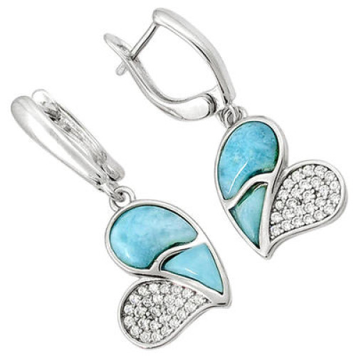 Natural Blue Larimar Heart 925 Sterling Silver Dangle Earrings