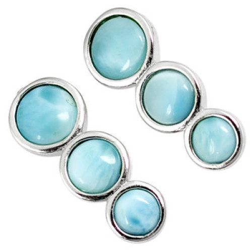 Natural Blue Larimar Round 925 Sterling Silver Dangle Earrings