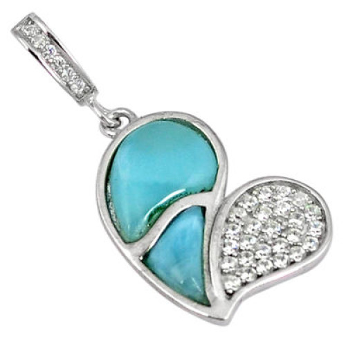 Natural Blue Larimar Topaz 925 Sterling Silver Heart Pendant