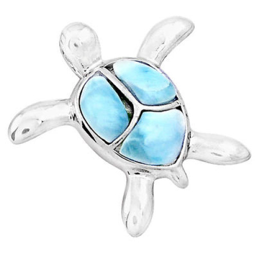 Tortoise Styled Sterling Silver Pendant Festooned With Larimar