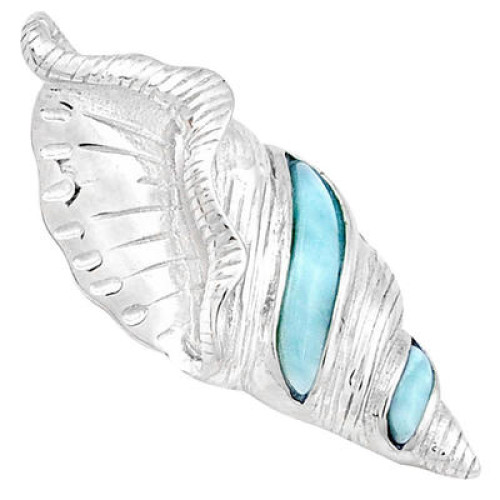 Plush Sterling Silver Sea Shell Pendant Festooned With Larimar Gemstone