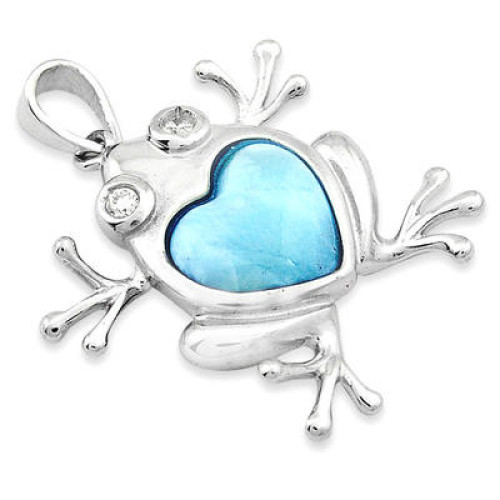 Stylish Sterling Silver Dominican Republic Frog Pendant Decorated With Larimar