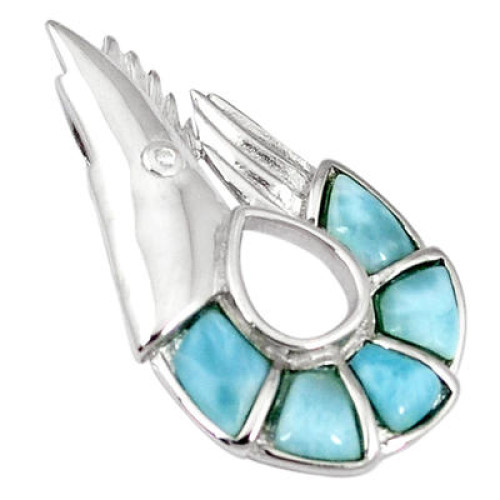 Natural Blue Larimar Topaz 925 Sterling Silver Fish Charm Pendant