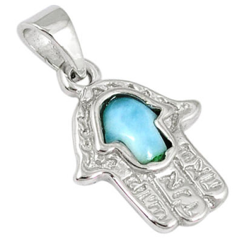 Natural Blue Larimar 925 Sterling Silver Hand Of Hamsa God Pendant