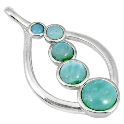 Natural Blue Larimar Round 925 Sterling Silver Pendant