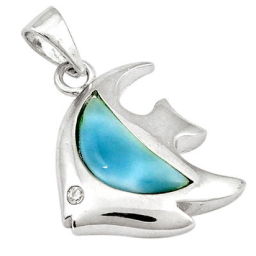 Natural Blue Larimar Fancy 925 Sterling Silver Fish Charm Pendant XP45