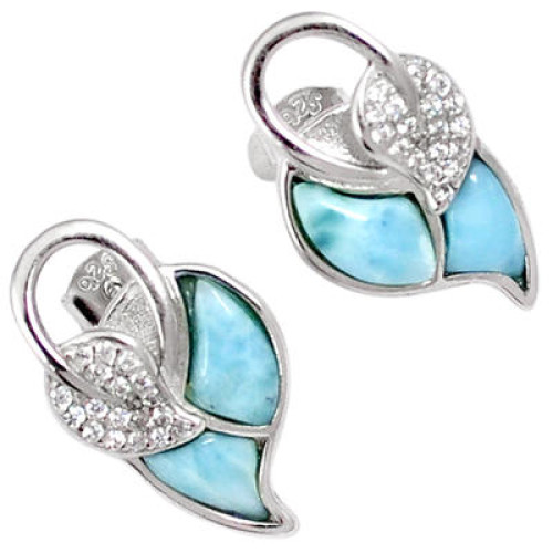 Natural Blue Larimar Fancy 925 Sterling Silver Dangle Earrings XE10